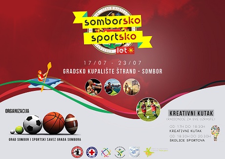 Somborski mališani, njihovi roditelji, tinejdžeri i mladi, koji provode slobodno vreme na kupalištu "ŠTRAND" imaće prilike da u periodu od 17. do 23.jula u popodnevnim časovima učestvuju u nizu kreativnog, edukativnog i sportskog sadržaja koje za njih, združenim snagama, kreiraju Grad Sombor, Crveni krst, Sportski savez i Sportski centar "Soko". Prvi put do sada, ove institucije i ustanove, organizuju manifestaciju pod nazivom "SOMBORSKO SPORTSKO LETO 2017".
